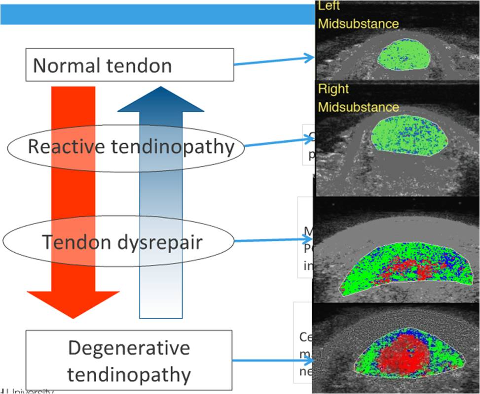 Jill Cook y Craig Purdam, presentaron en 2009 el trabajo: "Is tendon patologhy a continuum? A patologhy model to explain the clinical presentation of load-induced tendinopathy". Un modelo de patología de tendón simple y que aún hoy en día sigue siendo consistente con las presentaciones clínicas de la tendinopatía. El modelo explica la transición de la normalidad hacia la tendinopatía degenerativa y refleja la potencial reversibilidad en las primeras etapas. La reversibilidad en la patología en el estado degenerativo es improbable.